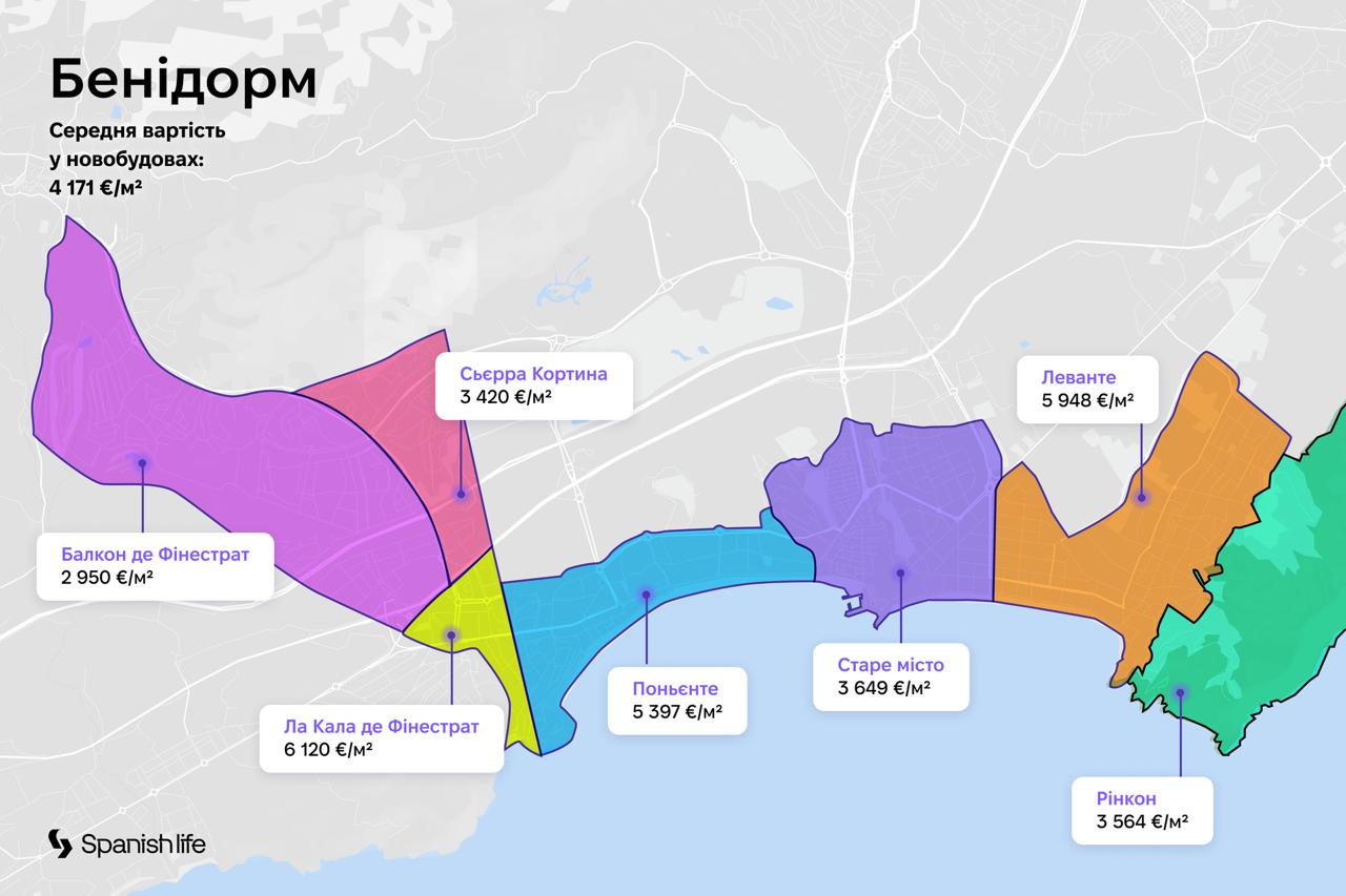 Шановні інвестори, ми підготували для вас детальні карти з актуальними цінами за квадратний метр на ринку житлової нерухомості в трьох ключових локаціях узбережжя Коста-Бланка.